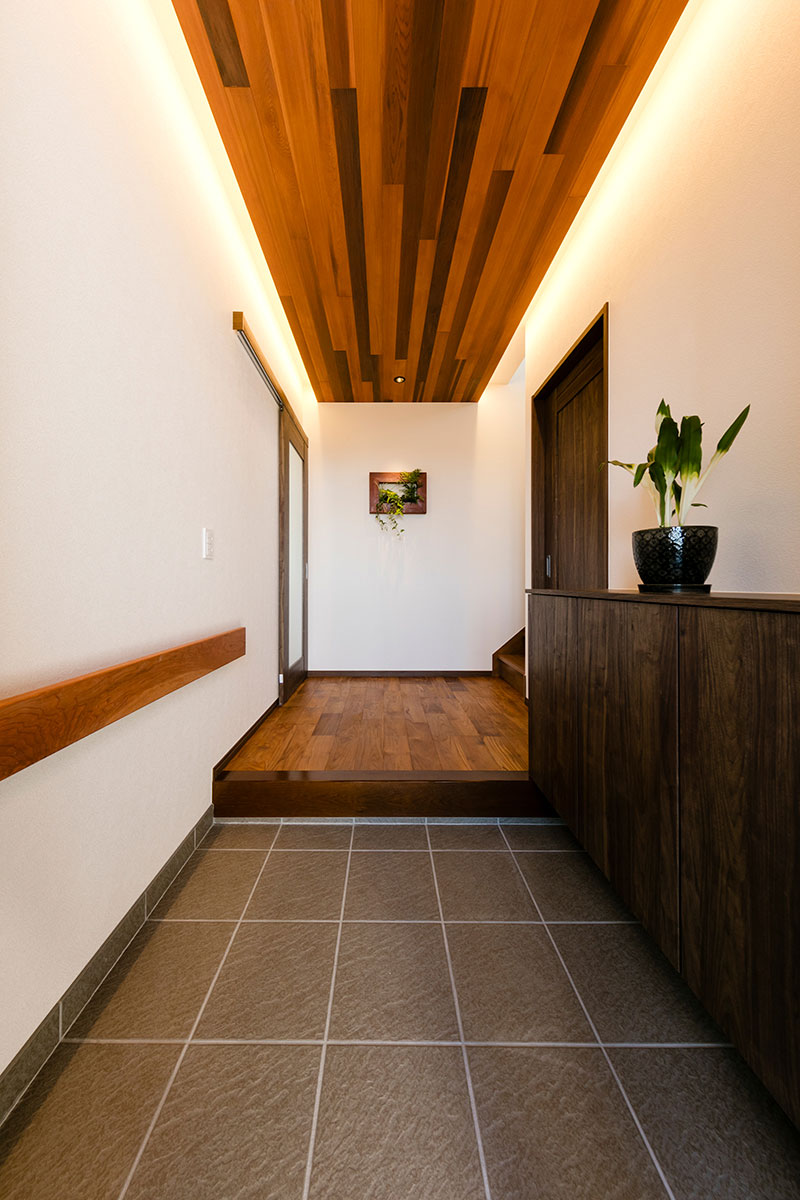 Aさまご夫妻は、お子さまが独立したことを機に、かねてより計画していた新居を建てることに。 四季折々、自然豊かな土地柄を存分に楽しめて、趣味の時間も大切にできる家造りを実現しました。