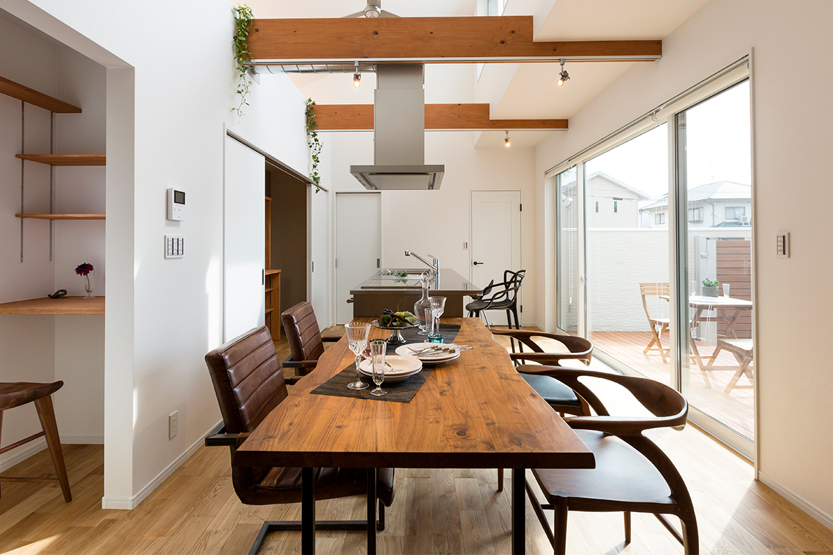 たくさんの「木材」を使っていただきました。この木材選びは楽しかったですね。結果、とても温かみのある素敵な家になったと思います。特にダイニングにはこだわりました。定形ではないテーブルとか、いろんな形の椅子とかライトとか。選ぶ際は、石川さんからたくさんご提案いただき、楽しみながら進めることができたことに感謝です。